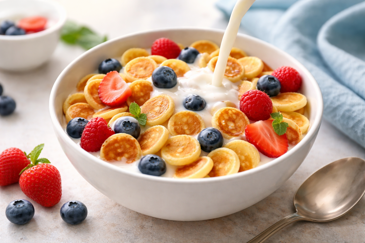 Want a fun, high-protein breakfast that tastes like dessert? Here’s the viral mini pancake cereal that actually fits your macros. You’re tired…