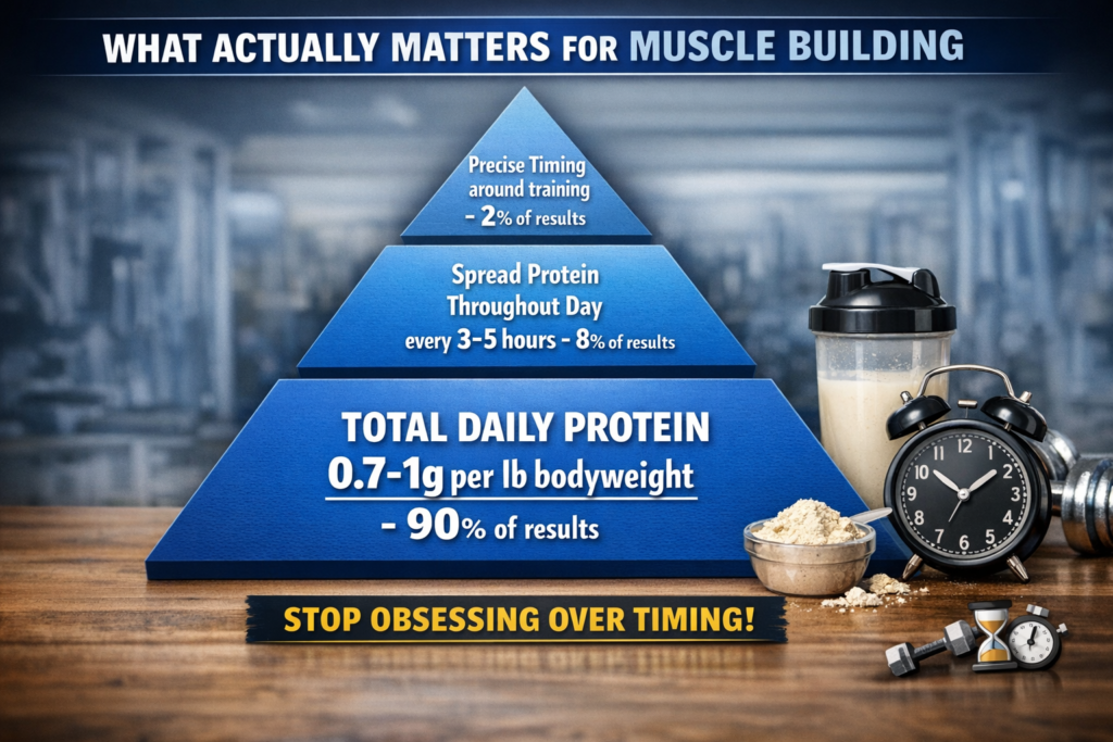 The old belief: Protein timing is critical. You must consume protein within a narrow “anabolic window” or waste your workout.