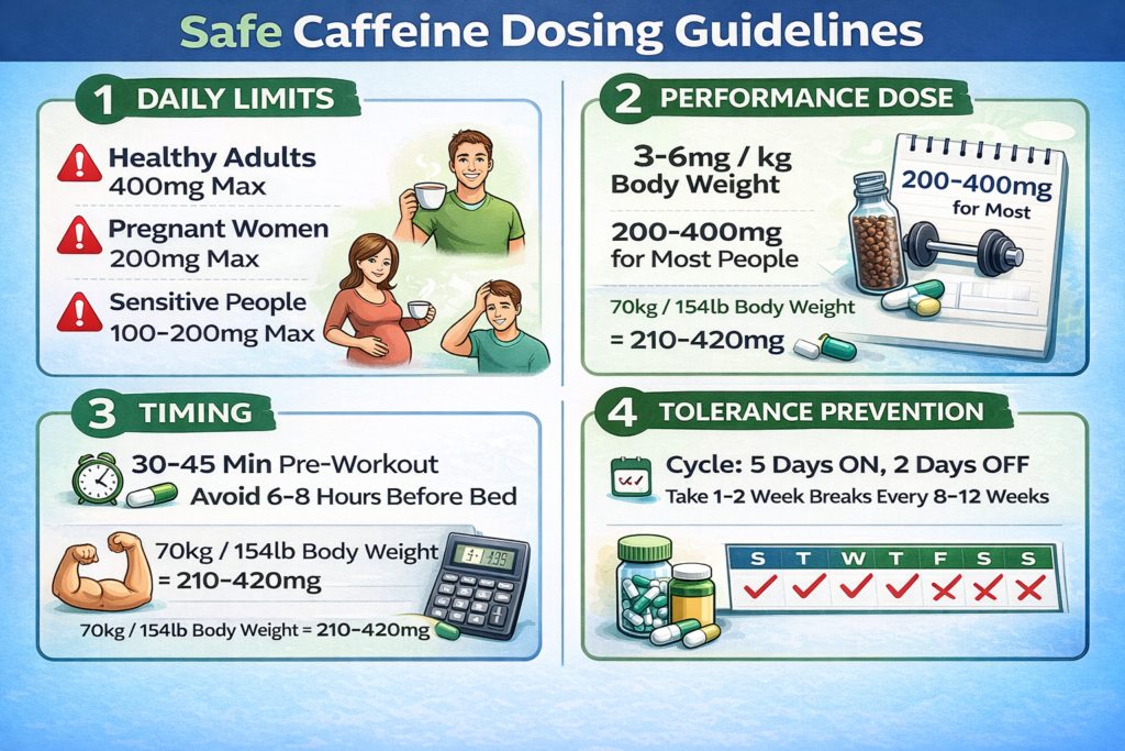 - Not exceeding safe limits (400mg daily maximum)