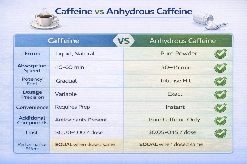 Confused about the difference between regular caffeine and anhydrous caffeine? Here’s the science-backed truth about which form gives you better results.