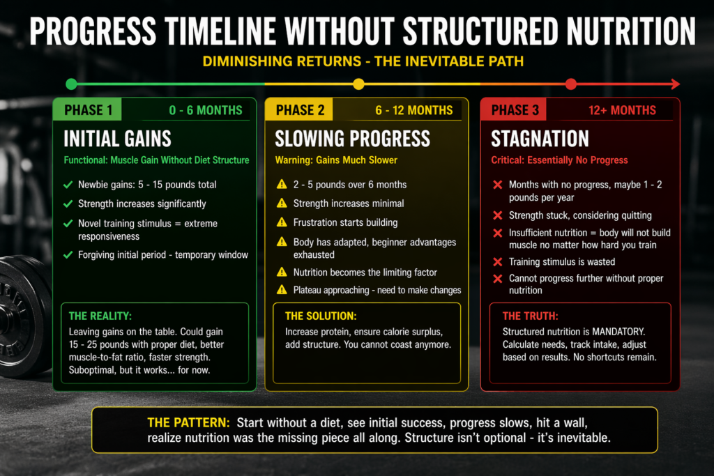 The truth about building muscle without structured nutrition: