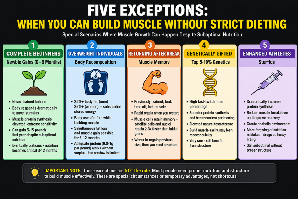 The five exceptions where muscle growth happens without dieting:
