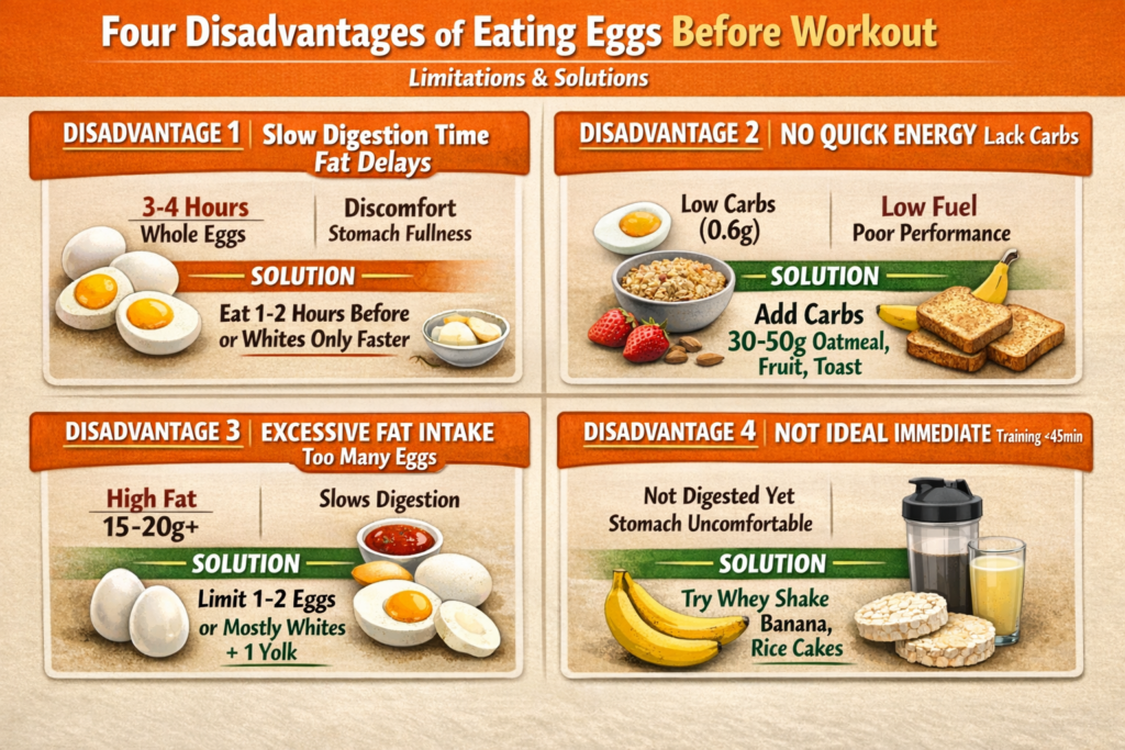 ❌ Eat 4+ whole eggs pre-workout (too much fat)