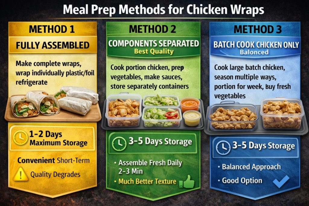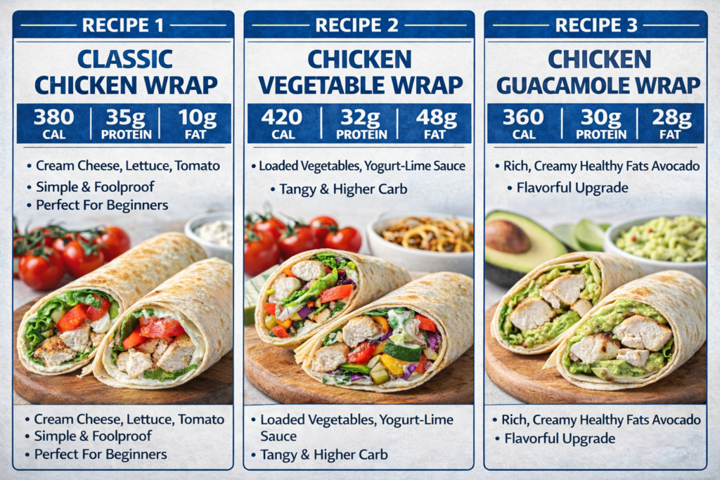 Here’s the complete solution: These 3 chicken wrap recipes provide 25-35g protein per serving, use simple ingredients available at any grocery store, take 10-15 minutes total to prepare, stay together without falling apart, and can be eaten fresh or meal prepped for the week. Includes classic, vegetable-loaded, and guacamole variations with exact measurements and nutritional information.