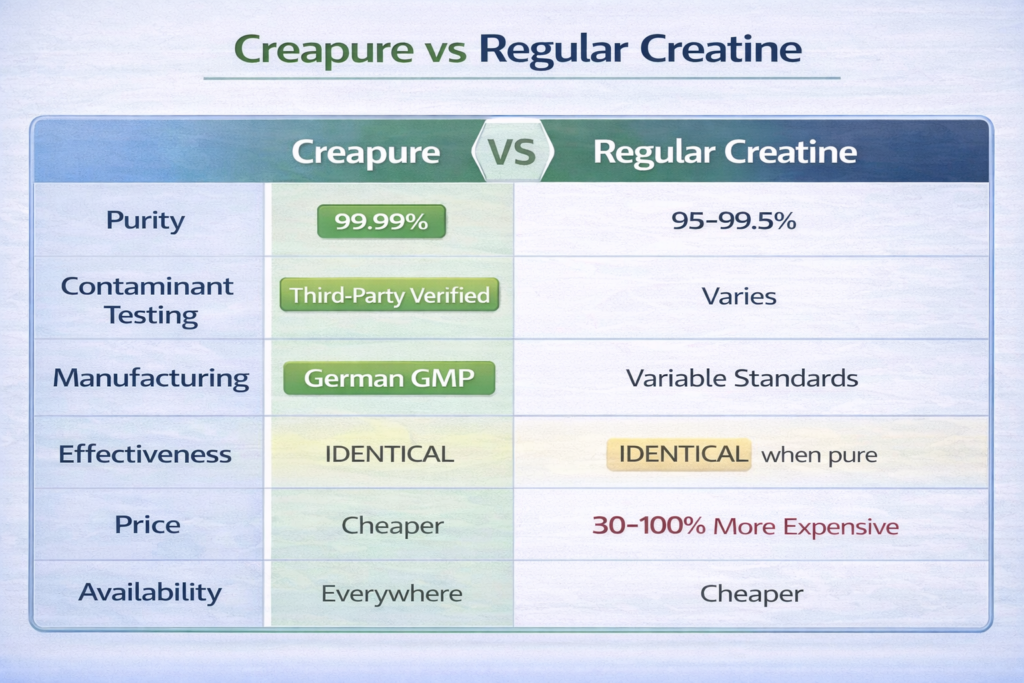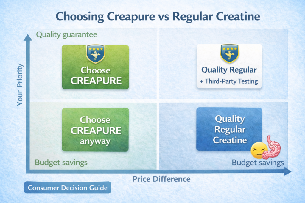 Both Creapure and quality regular creatine work. The difference is primarily about guaranteed quality, purity verification, and peace of mind, not muscle-building effectiveness.