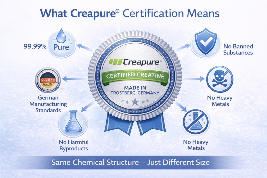 It provides confidence in consistency. When you buy Creapure-certified products, you know what you’re getting. With uncertified creatine, quality can vary even between batches from the same brand.