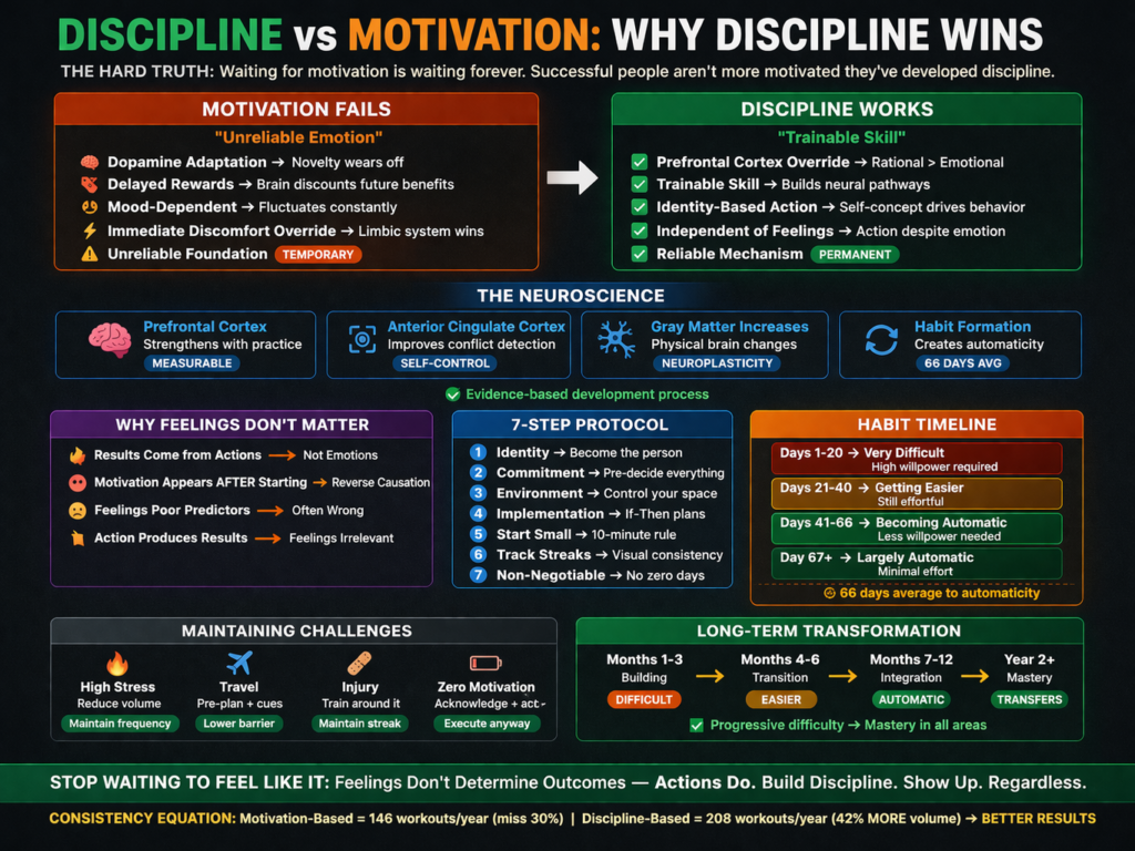 Waiting to “feel motivated” to train? You’ll be waiting forever. Motivation is unreliable. Discipline is what actually works.