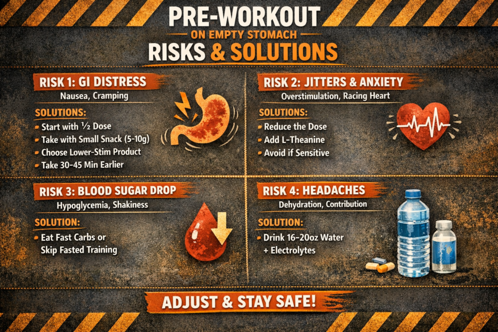 - Jitters and anxiety (caffeine hits harder fasted)