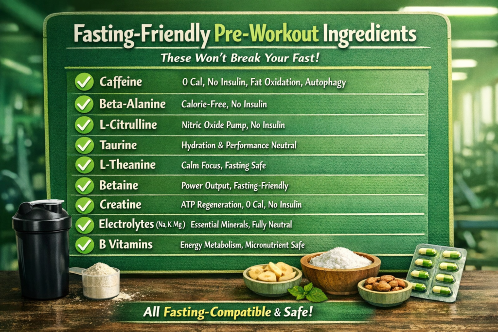 ✅ Many commercial pre-workouts are fasting-compatible (if they don’t contain BCAAs or carbs)