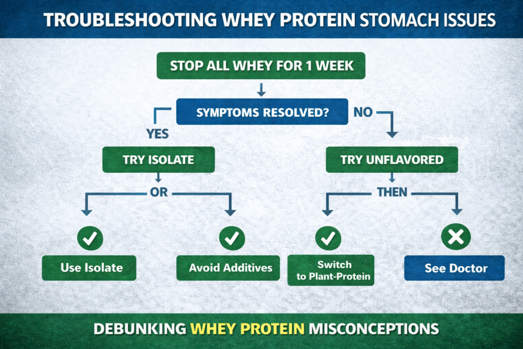 Remember: Whey protein is a convenience tool, not a requirement for building muscle. If it consistently causes problems despite troubleshooting, simply get your protein from whole foods or alternative supplements.