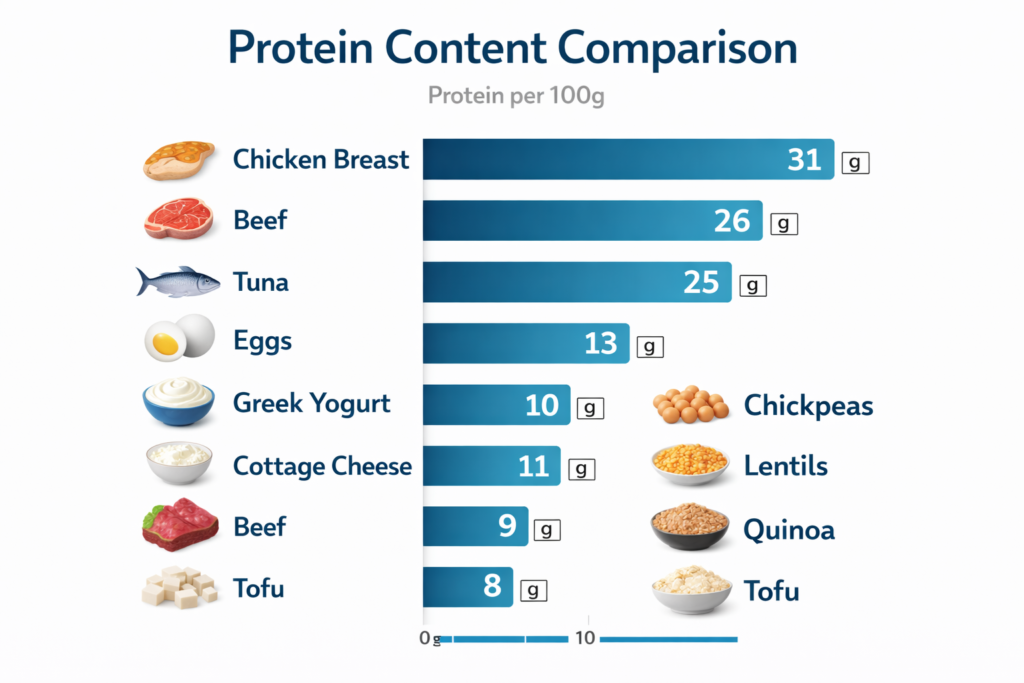 Cost comparison: Typically cheaper per gram of protein than beef or fish, making it ideal for budget-conscious muscle builders.