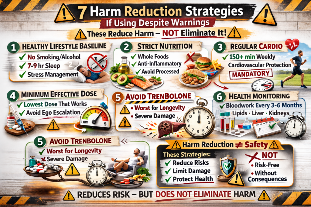 NO SAFE SUPRAPHYSIOLOGICAL DOSE. ONLY HARM REDUCTION, NOT ELIMINATION. TRT AT REPLACEMENT LEVELS ≠ STEROID ABUSE. EVERY DOSE ABOVE NATURAL = ACCELERATED AGING. THE PRICE OF UNNATURAL MUSCLE IS PREMATURE AGING.