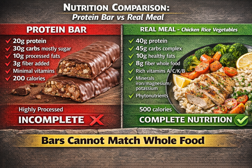 ✅ Bars should supplement diet, not replace it (80%+ whole food nutrition)