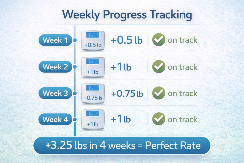 Gaining 0.5-1 pound per week: Perfect! This is the ideal rate for muscle gain with minimal fat accumulation.