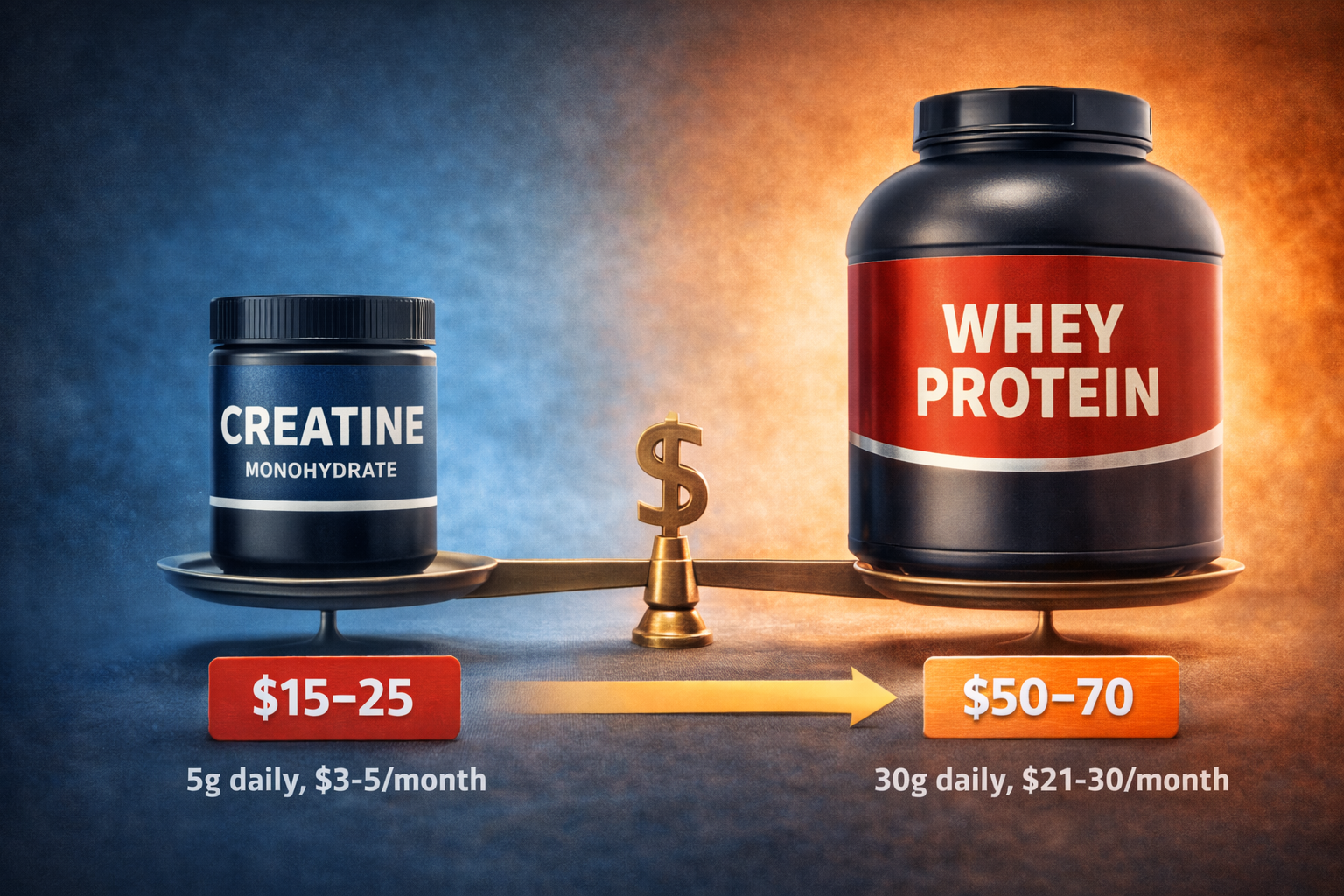 - Creatine monohydrate: $10-15 monthly