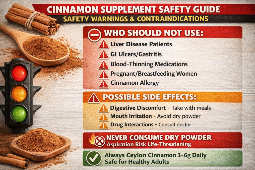 ❌ Never use Cassia cinnamon for daily supplementation (liver toxicity risk)