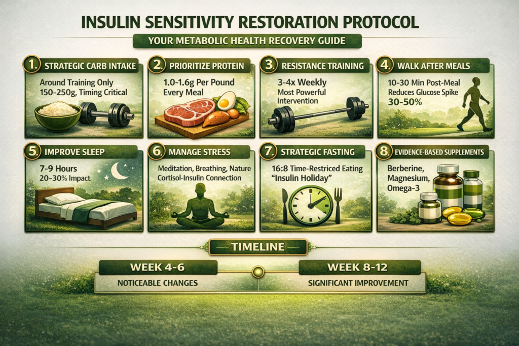 Ready to build a complete metabolic optimization system with proper insulin sensitivity testing, strategic nutrition timing, progressive training protocols, and lifestyle strategies that transform your body composition while improving long-term health? Understanding insulin is just the beginning. Get a comprehensive guide to restoring insulin sensitivity completely, optimizing nutrient partitioning, building muscle while losing fat simultaneously, and achieving the physique you want without fighting your biology. Stop fighting insulin. Start working with it to achieve effortless results.