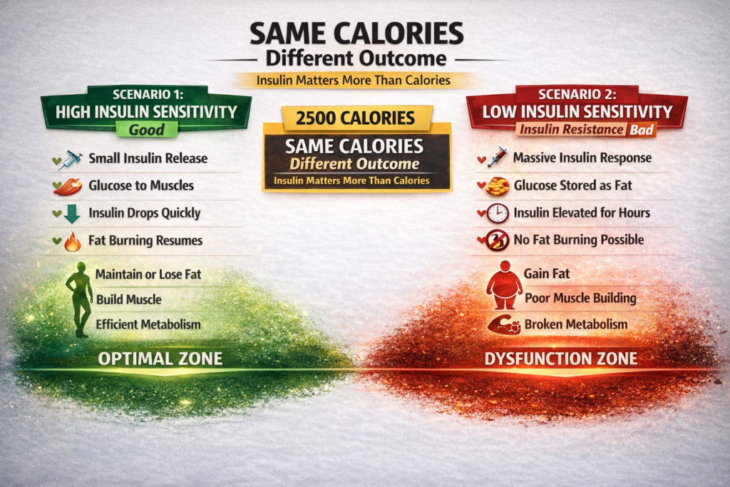 In this comprehensive guide, I’ll explain exactly what insulin sensitivity is (and why it’s more important than calories), reveal how insulin resistance develops (most people have some degree), show you the 8 signs you’re insulin resistant (check yourself right now), provide the complete protocol to restore insulin sensitivity (works in 4-8 weeks), and explain why high insulin keeps you fat and weak (the mechanism).