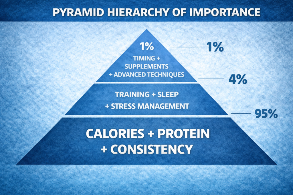 Why do forums overflow with questions about the perfect training split, the ideal rep range, the best exercise for bicep peaks, while basic nutritional principles remain ignored?