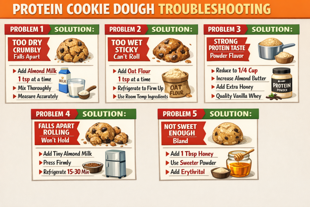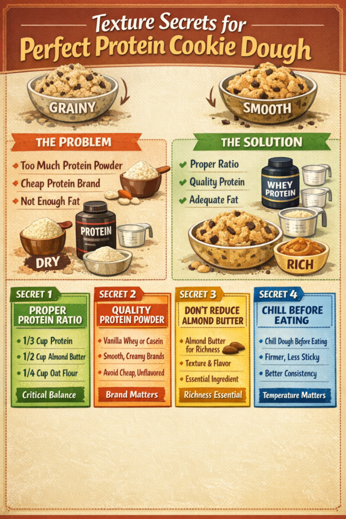 In this comprehensive guide, I’ll provide the complete no-bake protein cookie dough recipe with exact measurements, reveal the secret technique for achieving perfect cookie dough texture (not grainy), show you 5 delicious flavor variations (chocolate chip, peanut butter, birthday cake, double chocolate, snickerdoodle), explain macro adjustments for cutting, bulking, or maintenance goals, and provide troubleshooting solutions for common problems (too dry, too wet, protein powder taste).