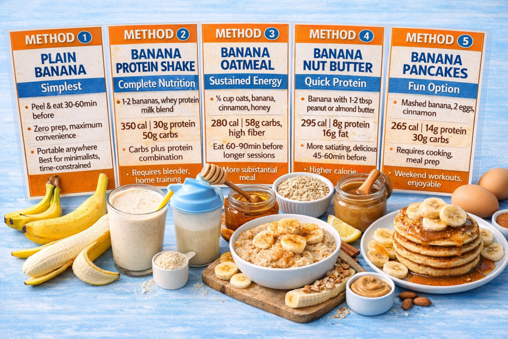 Ready to optimize your complete pre and post-workout nutrition strategy with science-based timing, portion guidelines, and food combinations that maximize performance and recovery without expensive supplements or complicated meal planning? Banana timing is just one piece of effective workout nutrition. Get a comprehensive guide to calculating your exact pre-workout carb needs, building complete meals that fuel performance, timing all nutrients optimally, and achieving maximum results from every training session. Stop guessing about workout nutrition. Start following proven strategies that deliver results.