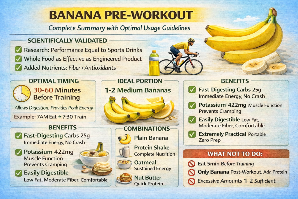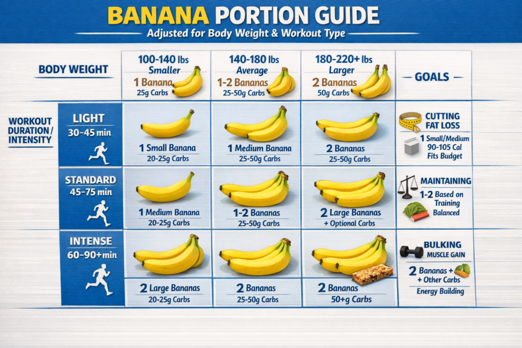 ✅ Ideal portion: 1-2 medium bananas (25-50g carbs for most workouts)