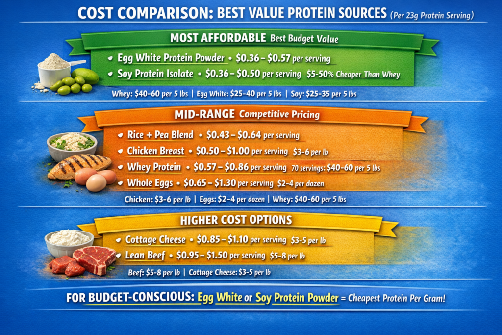 - Cheapest: Egg white or soy protein powder