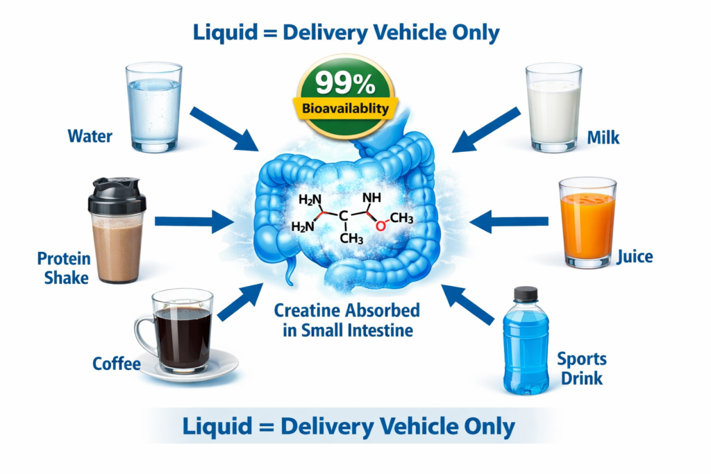 The liquid is just a delivery vehicle. Once creatine reaches your small intestine, absorption occurs efficiently.